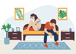 男性泌尿外科平面构图 客厅内部视图 分心的夫妇没有性矢量插图