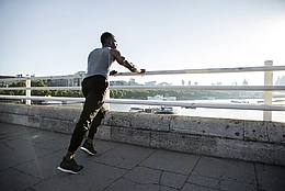 男子户外训练侧视图