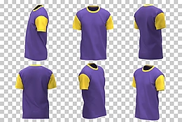 不同视角的紫黄色男式t恤实物模型