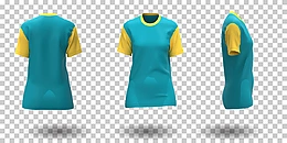 女式绿黄色t恤 不同视角 逼真风格