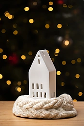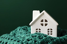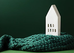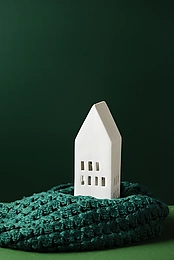 白色的房子和绿色的布料