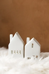 白色的房子和棕色的布