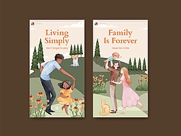 In tagram模板与家庭娱乐日概念水彩风格