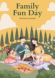 海报模板与家庭娱乐日概念水彩风格